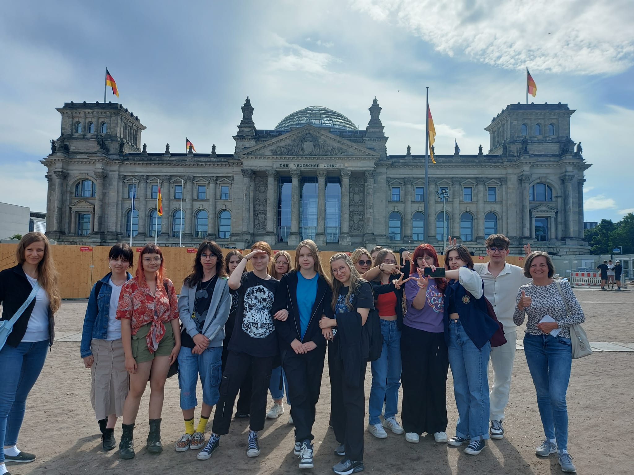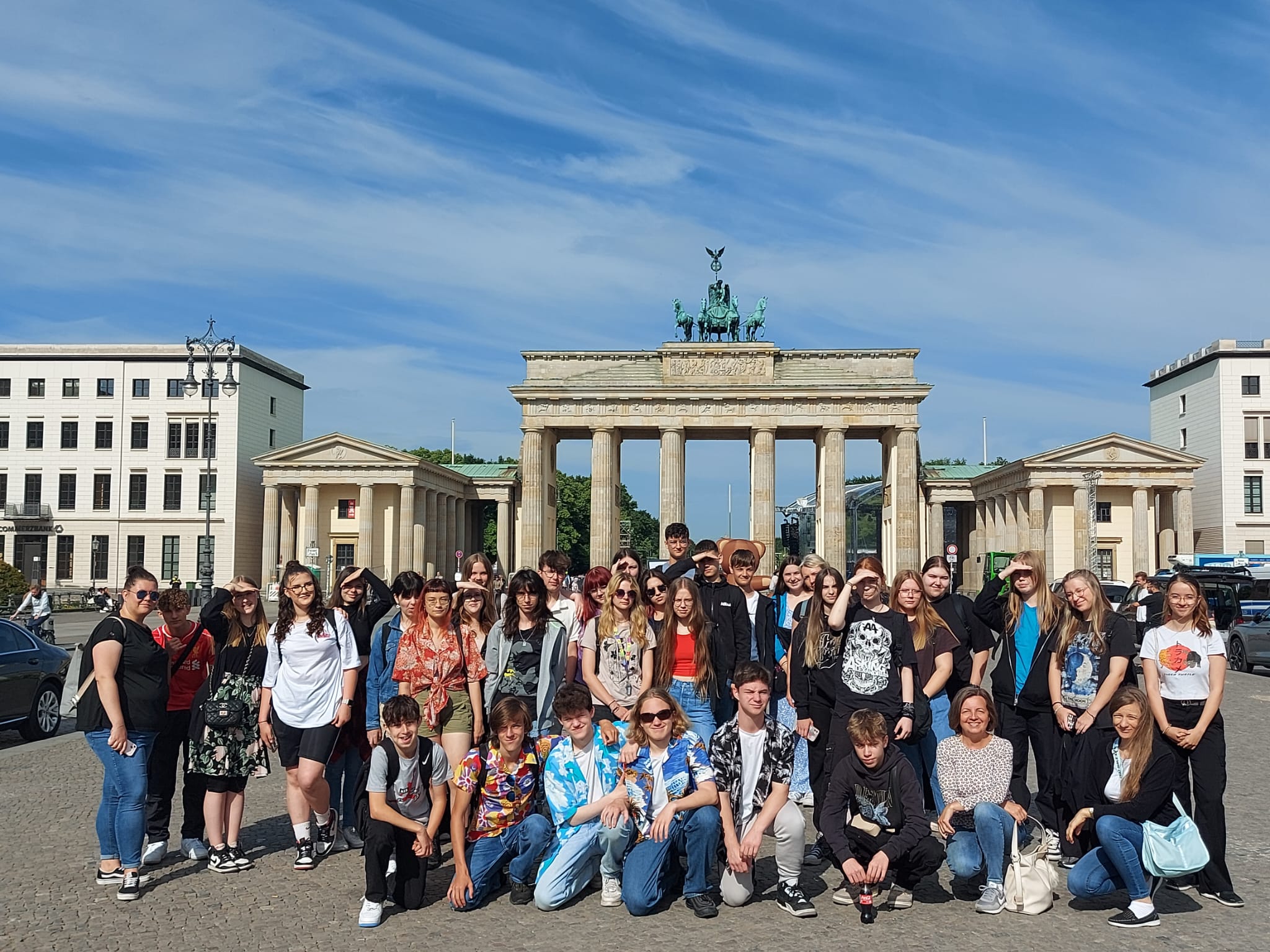 Der Donnerstag war für die Besichtigung von Berlin reserviert. Treffpunkt war das Brandenburger Tor im Herzen der deutschen Hauptstadt. Weiter führte die Besichtigung Richtung Reichstag und danach zum Denkmal für die ermordeten Juden Europas. Anschließend war ein Besuch bei Madame Tussauds geplant. Danach hatten die Schüler:innen die Gelegenheit Berlin selbst zu erkunden mit anschließender Sightseeingtour auf der Spree. Am späten Nachmittag trafen sich alle in der Jugendherberge. Die deutschen Schüler:innen backten Pizzen für ihre Gäste und überraschten diese mit kleinen Geschenken als Andenken an die Käthe-Kollwitz-Gesamtschule. Am Abend kamen auch der Bürgermeister der Gemeinde Mühlenbecker Land, Herr Smaldino, seine Frau und der Chef der Firma MRA, Herr Seidler, zu Besuch. Der Bürgermeister ließ es sich nicht nehmen und brachte den polnischen Schüler:innen kleine Geschenke mit.