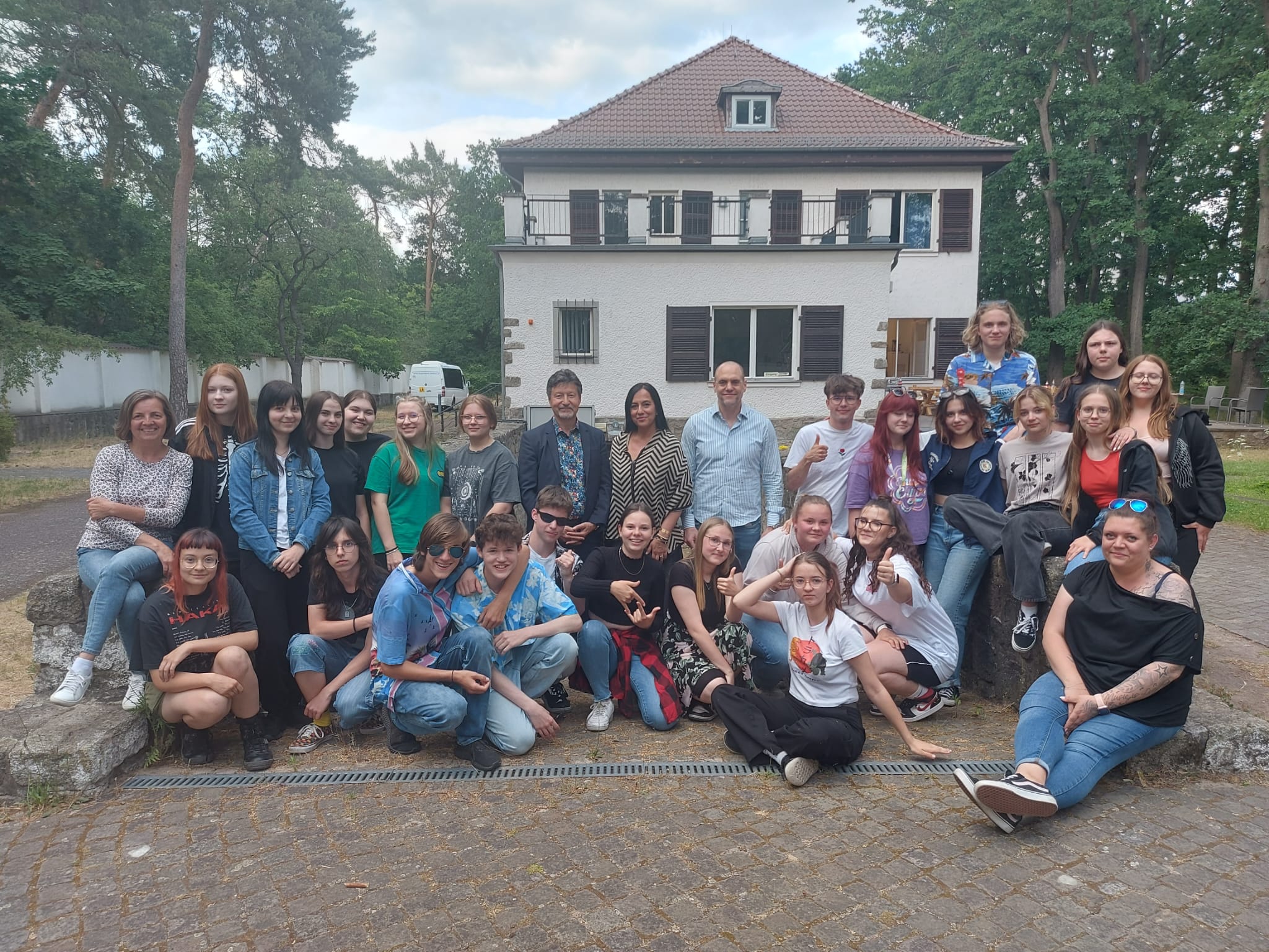 Am Dienstag trafen sich die Schüler:innen sowie Lehrkräfte beider Schulen am Bahnhof in Oranienburg. Frau F. Rennspieß führte die Gäste durch die Stadt zum Schloss. Anschließend besuchte die Gruppe die Gedenkstätte Sachsenhausen. Am Abend ging es dann nach Hohen Neuendorf in die Himmelspagode zum Abendessen.